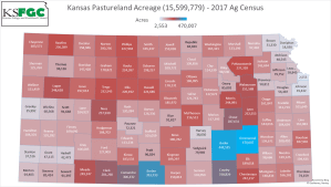 The 2017 USDA Ag Census ranked Kansas 10th in total pastureland. Find your county and celebrate National Forage week with the KSFGC, the American Forage and Grassland Council, the state forage councils and ALL forage growers. This map is one of 9 maps and charts emailed to KSFGC members today. Join now, ksfgc.org/membership-typ