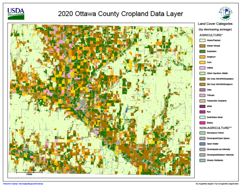 The 2020 Cropland Data Layer (CDL) was released Feb 1, 2021, and Kansas State Statistician Doug Bounds then created 105 downloadable county maps and made them available on the KSU Ag Manager site in March.