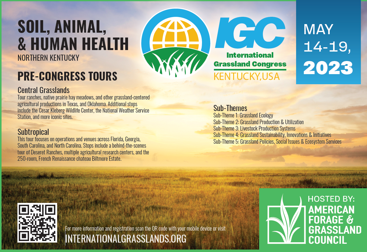 Grassland managers are invited to participate in the International Grassland Congress May 14-19, 2023 at the Northern Kentucky Convention Center in Covington, Kentucky, USA.