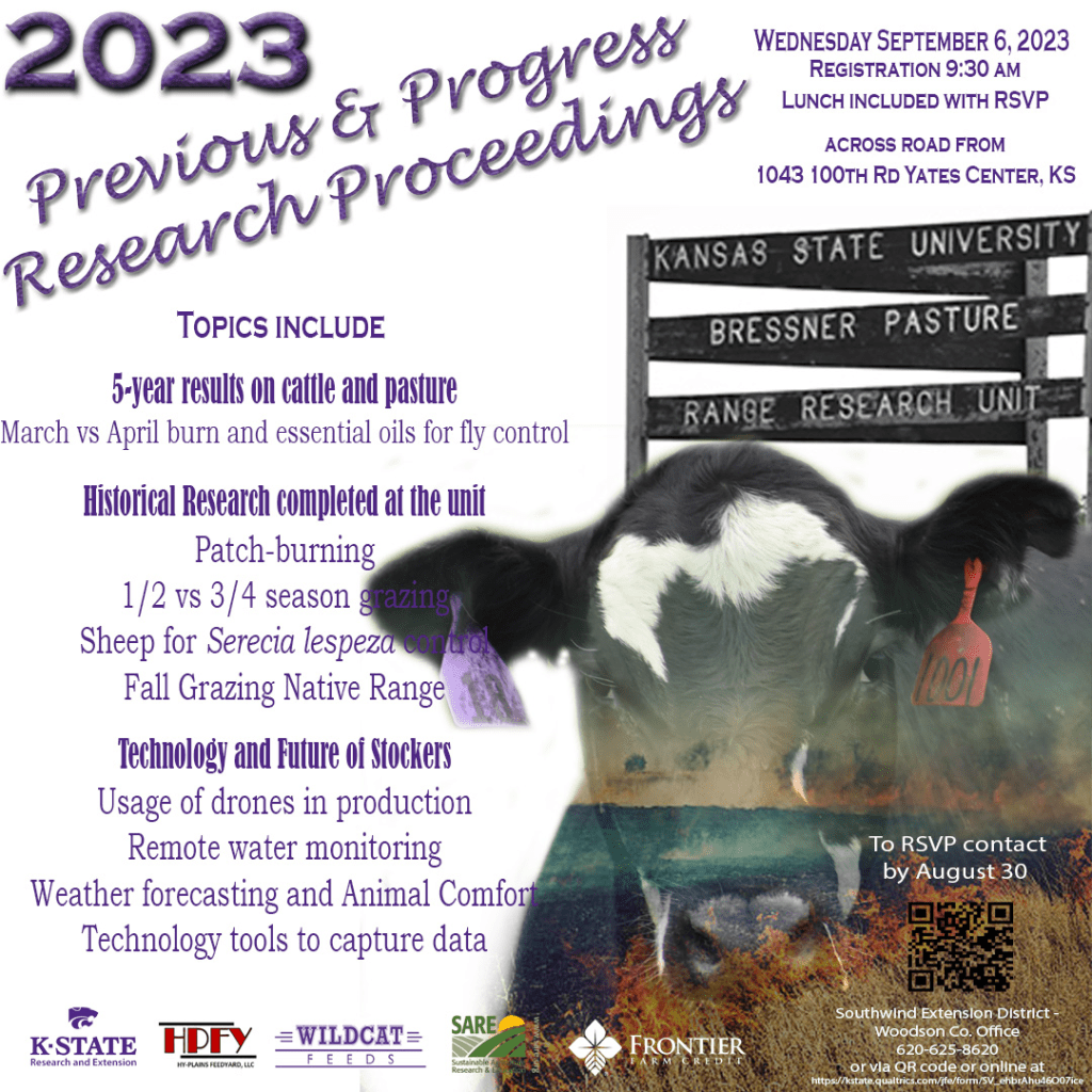 The event is scheduled to end around 3 PM. We hope that you can attend the event. If you are able to attend please contact myself Jaymelynn Farney, Beef Systems Specialist, Kansas State University President, Bressner Pasture committee, jkj@ksu.edu, 620-820-6125, or register by August 30th to the Southwind Extension District – Woodson County Office (620) 625-8620. Registration guarantees you a lunch at the event. Also, if you are needing anything in order to attend the meeting (dietary considerations, accessibility, etc.) please contact either myself or the Woodson County Extension Office so that we may meet your needs.