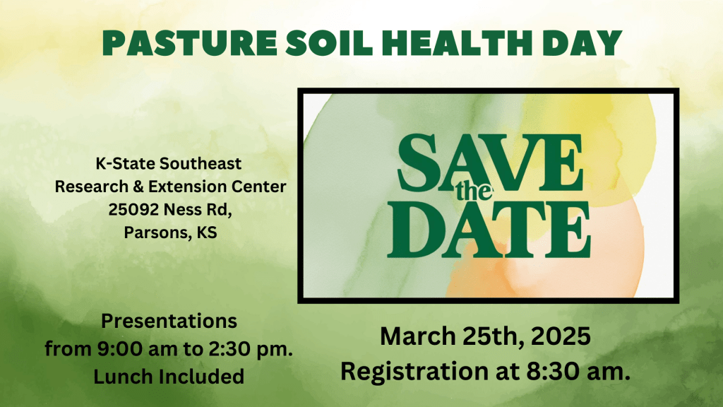 K-State Research and Extension has partnered with Crawford County Conservation District to host a Pasture Soil Health Field Day on March 25 at the Southeast Research and Extension Center. A small area has been overseeded with novel-endophyte fescue, and three treatments (seed+fertilizer+herbicide, seed+herbicide, and seed) will be available to show the varying levels of renovation. Newland Ag Drones will also demonstrate the kinds of drone technology that is available for small-area rejuvenation.