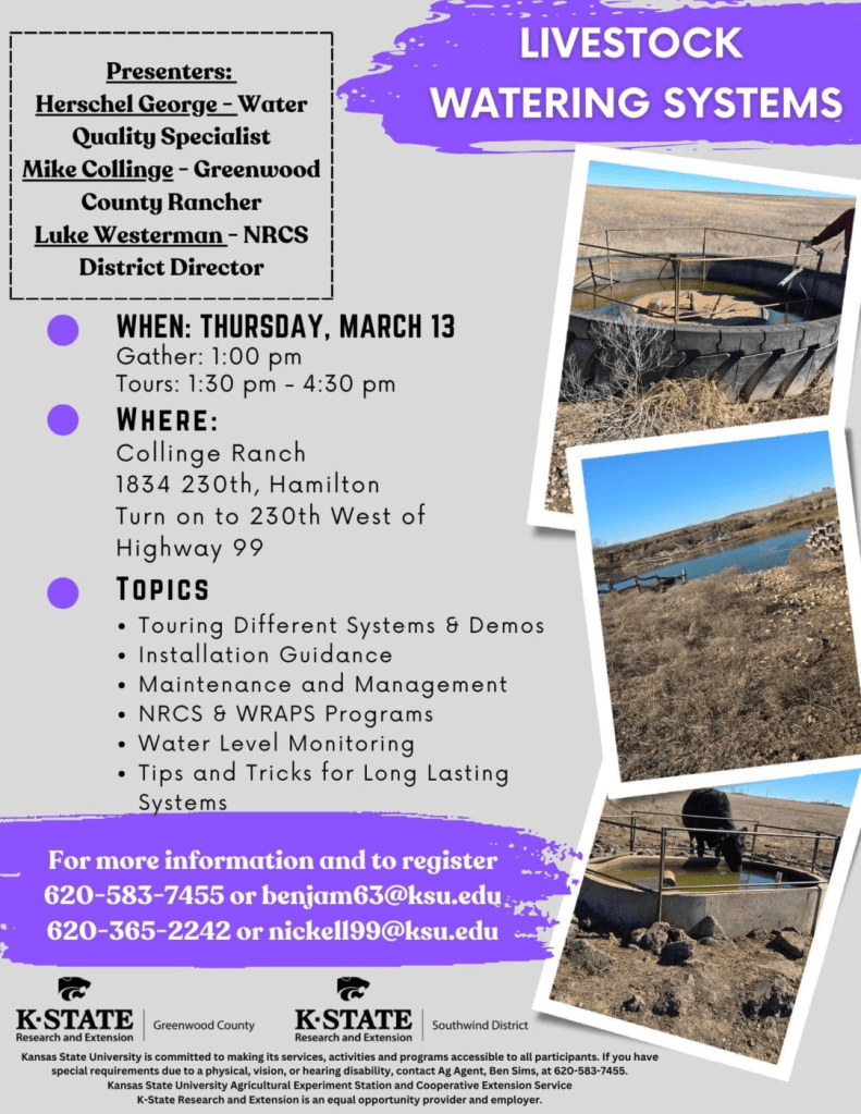 Livestock Watering Systems Field Day, March 13, Hamilton, KS