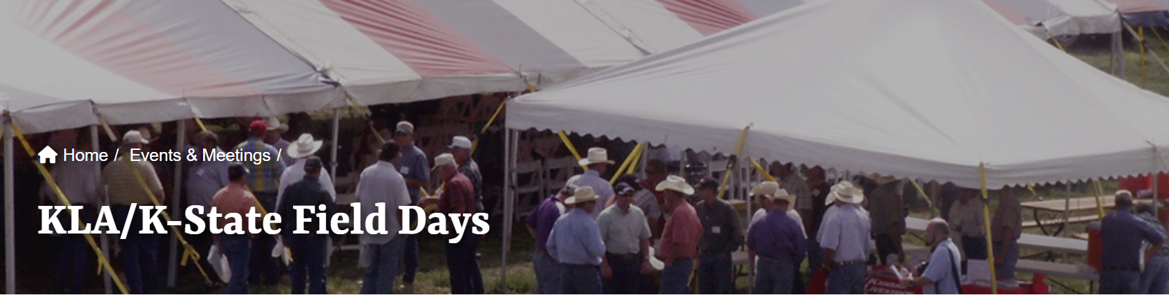 Two KLA/K-State Field Days are set for this coming August. The first will be on August 21 at the Larson Ranch, in Wichita County with registration starting at 3:30 p.m. The second will be on August 28, at the Wells Ranch, Woodson County with registration again beginning at 3:30 p.m. Both events are free and will conclude with fellowship and a beef dinner. More information will be posted here as it becomes available.
