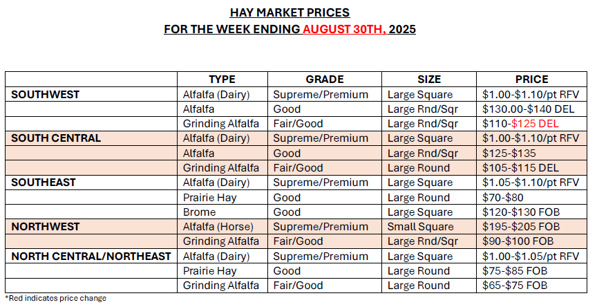 This will be my last report as I am retiring this week. Tessa Beeman will be your new Hay Market Reporter. It has been a pleasure and honor serving as your hay reporter. Thank you.