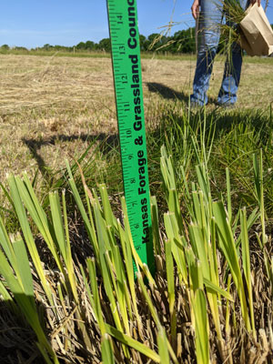 Figure 1. Ensuring your stubble height in both grazing and baling scenarios encourages longevity of stands, especially in dual-purpose situations. Picture provided by Wendie Powell of Wildcat District.